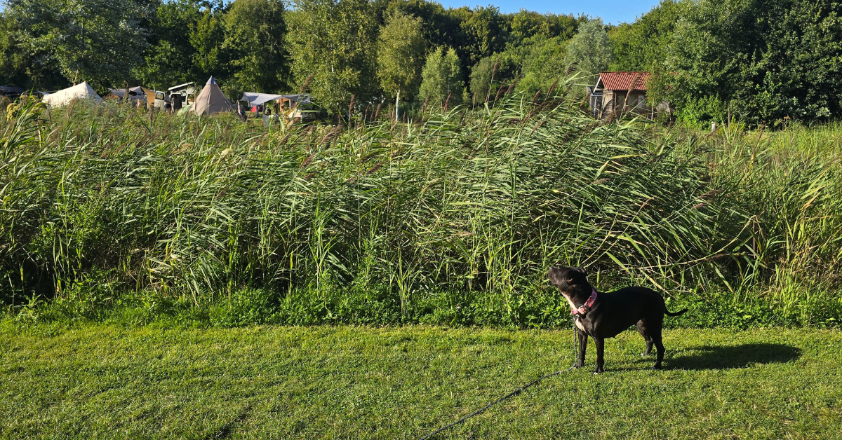 We stayed at Het Bos Roept, a small-scale nature campsite that feels far removed from the busier, commercial sites. What makes it special is the freedom to choose your spot and the beautiful woods surrounding the site. If your dog prefers quiet, you can set up along the forest edge, while more social dogs might enjoy being near the central area with the playground and amenities.