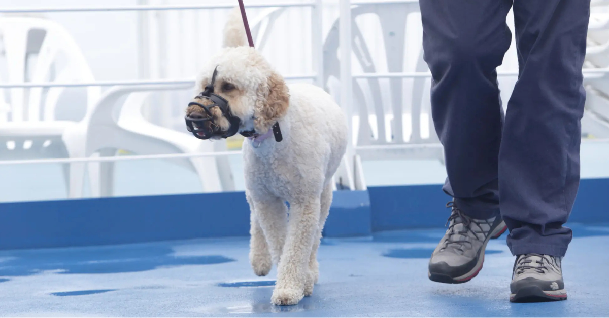 There are no size restrictions on Brittany Ferries, but you need a muzzle and Spanish laws may require muzzles for certain breeds in public. France and Spain also have specific rules for “guard breeds” (e.g., Pitbulls, Rottweilers). Check local laws before departure.